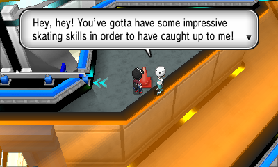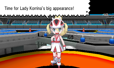 All Pokémon Trainers in this Gym will be riding around on Roller Skates, but don’t worry, you don’t have to out skate them. However, unlike other Gyms, you do have to catch them before they will start to battle you (rather than the usual: I see you, let’s battle!) These rails will lead you to various points in the gym. Also unlike the previous Gyms, to get to Korrina, you will have to defeat all the four trainers: Roller Skater Shun, Roller Skater Rolanda, Roller Skater Dash, and Roller Skater Kate. By defeating them parts of a skate rail towards the middle of the Gym appear. When the entire rail is up, grind the rail over to the Korrina in the middle of the Gym.